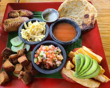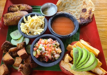 Salvadoran food is flavorful, traditional, and comforting. The country’s signature dish is the pupusa, a handmade corn tortilla filled with cheese, beans, or pork, served with curtido (pickled cabbage) and tomato sauce. Other local favorites include fried yuca with pork, tamales, and empanadas de plátano. Each dish reflects El Salvador’s rich culture and the warmth of its people.